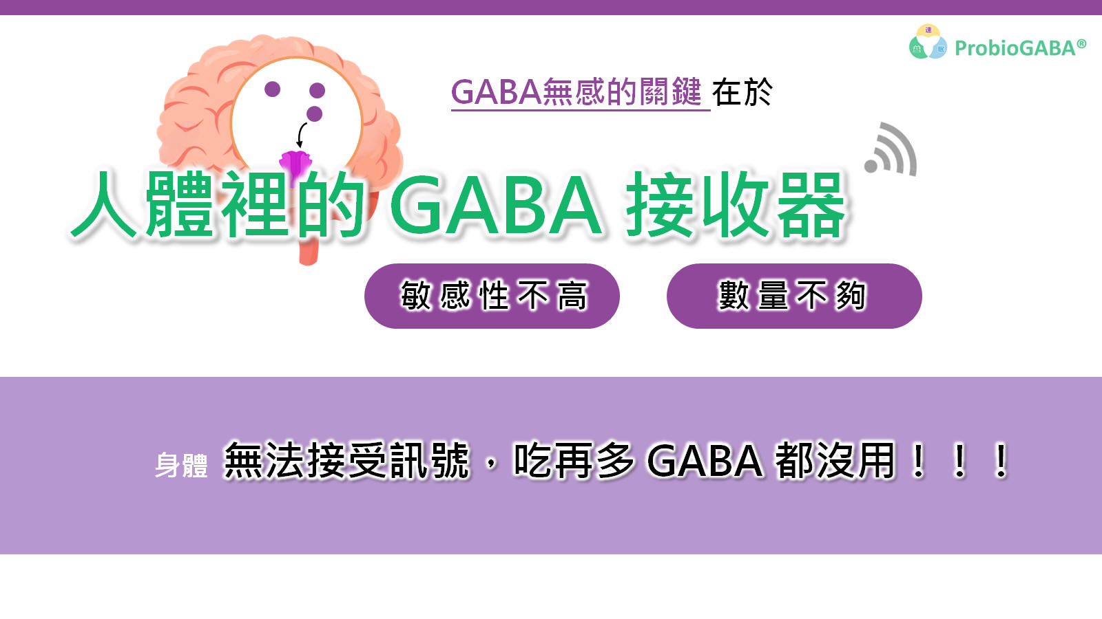 因為 GABA 必須要透過體內 GABA 接受器的幫助,才能進行訊息傳遞,當體內 GABA 接收器的數量太少或活性不夠時,就算補充大量的 GABA 也無法產生作用。